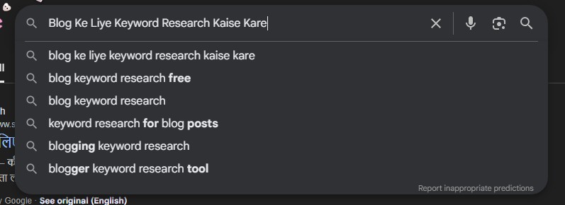 Step 3: Google Suggest Ka Use Kare : blog ke liye google se keyword kaise research kare 2026